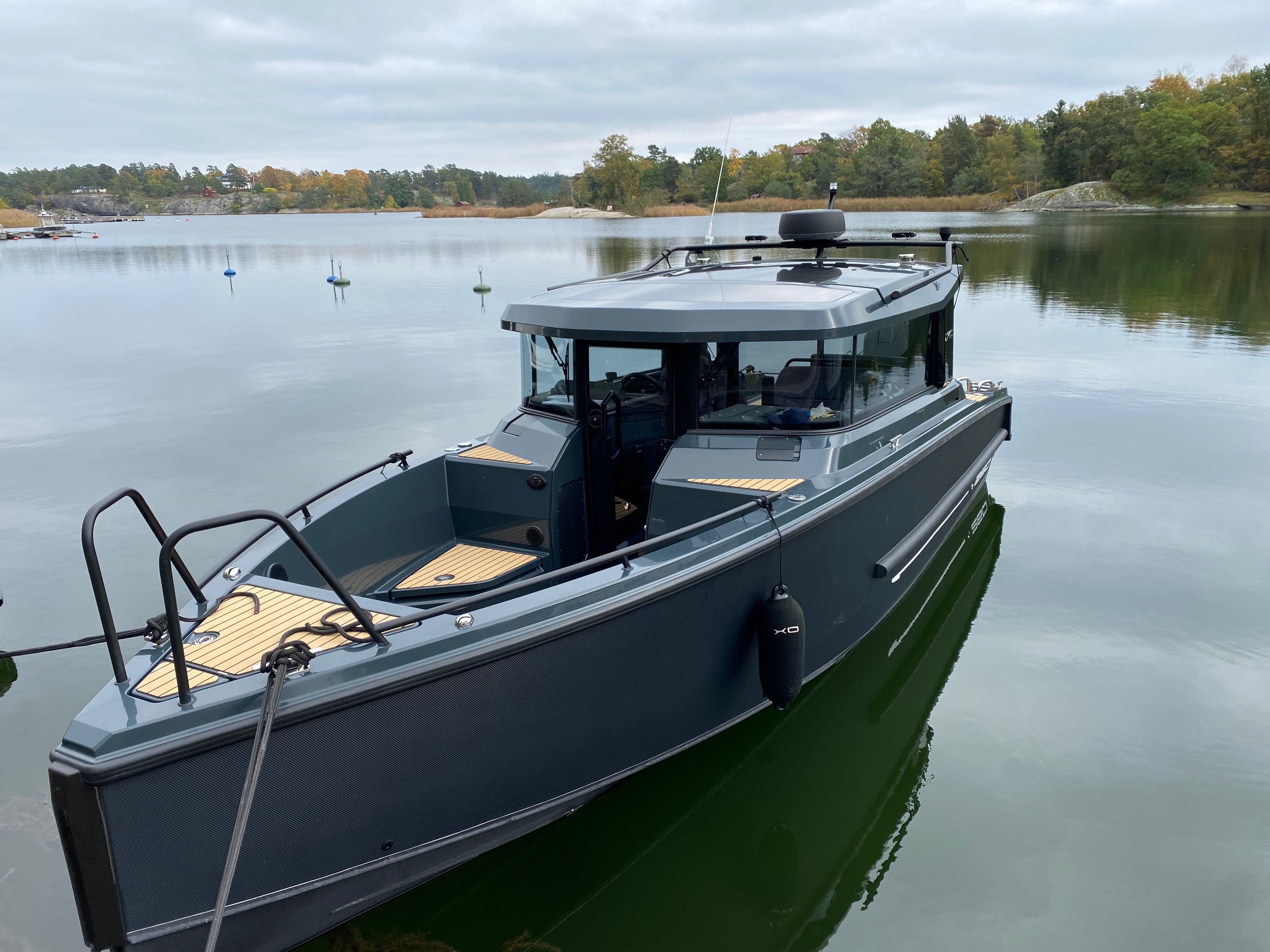 We have a modern XO 260 Cabin from XOBOATS that can take up to 7 passengers. The boats Captain have a Swedish Captain license (Fartygsbefäll klass VIII license). The boat have seating possibilities inside the cabin as well as in the stern with sofas. In the bow, there is also seating to relax on in good weather conditions.